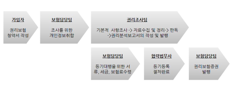 타 보험과 두드러지는 점은 '재산'과 '사기' 그리고 '등기'까지 연관이 되어있기 때문에 단순히 '보험대리점에 가입'하는 것으로 끝나지 않고, 권리조사팀의 실제 조사와 협력법무사의 소유권이전등기가 함께 이루어진다는 점입니다.